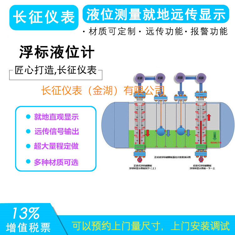 浮標(biāo)液位計(jì)具有外型結(jié)構(gòu)美觀(guān)、牢固、讀數(shù)直觀(guān)、醒目、測(cè)量范圍大等優(yōu)點(diǎn),特別是對(duì)大量程強(qiáng)腐蝕性、高粘度、普通精密測(cè)量的場(chǎng)合,比較適用。酸性、堿性以及高粘度性的槽、罐、油田、油庫(kù)等液位測(cè)量