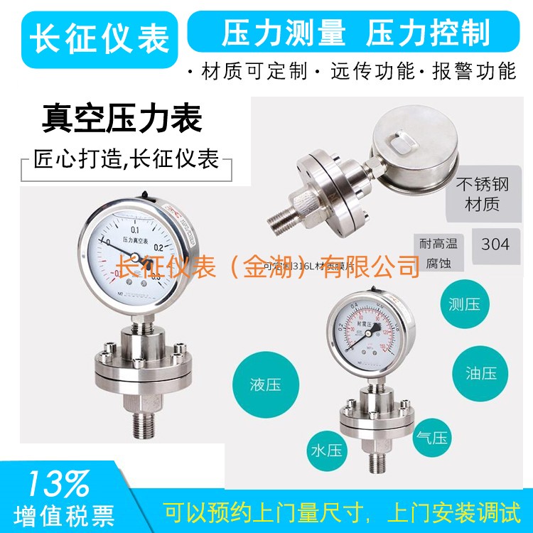 若選用耐腐蝕材料制造,可測(cè)量腐蝕性氣體壓力