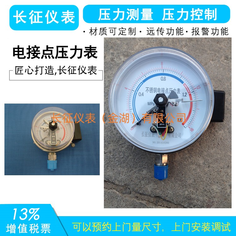 電接點(diǎn)壓力表通常與相應(yīng)的電氣器件(如繼電器及變頻器等)配套使用,即可對被測(控)壓力的各種氣體與液體介質(zhì)經(jīng)儀表實(shí)現(xiàn)自動(dòng)控制和發(fā)信(報(bào)警)的目的。